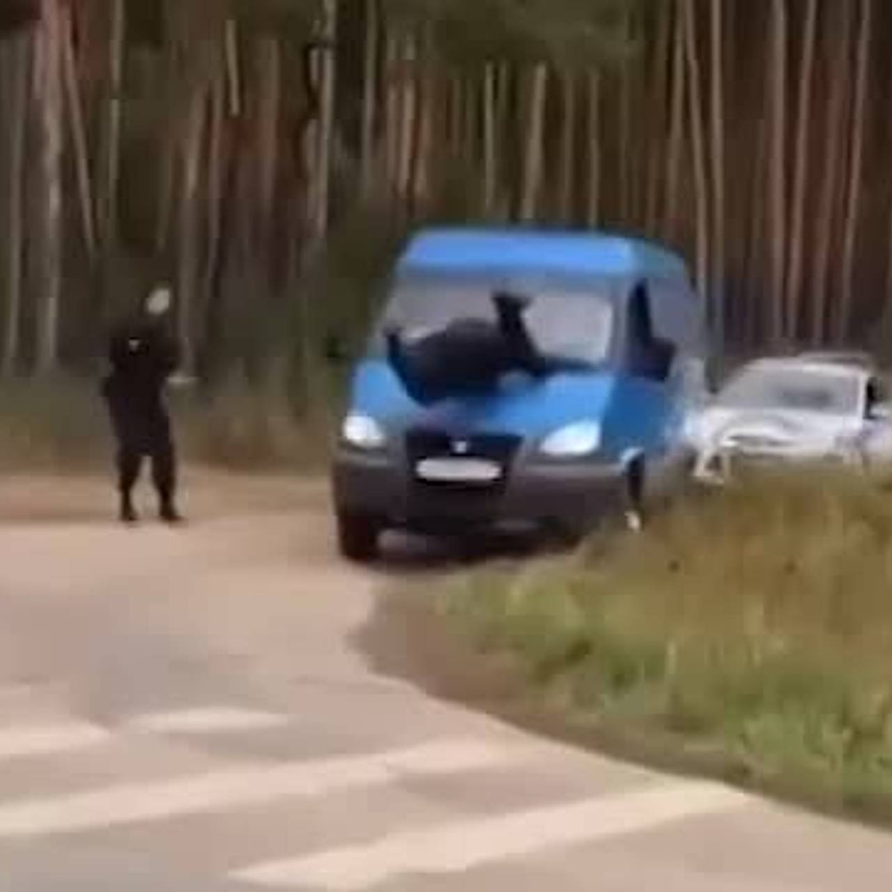 Во Владимирской области мужчина на фургоне прокатил полицейского на капоте и попал на видео. Кадры публикует Telegram-канал SHOT.