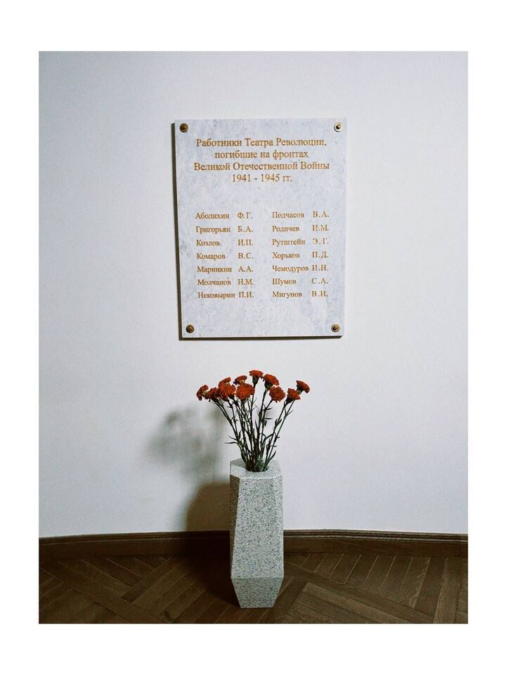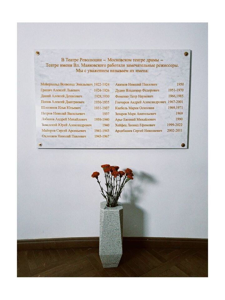 - Наоборот, руководством Театра Маяковского была проведена масштабная работа по приведению мемориальных объектов в достойное состояние. Прежний памятный знак, изготовленный из папье-маше с имитацией мрамора и размещенный в случайном, не обусловленном ни исторической логикой, ни архитектурным решением месте, был заменен на новый мемориал из натурального камня. При этом список имен павших воинов был дополнен, что восстановило историческую справедливость. Разработанный под руководством народного художника Российской Федерации, главного художника Театра Владимира Анатольевича Арефьева комплексный проект предусматривает симметричное размещение в зоне партера двух мемориальных досок: в память о воинах-маяковцах и с именами выдающихся режиссеров, творивших в Театре со дня его основания. Новое расположение в местах наибольшей проходимости обеспечивает должное внимание посетителей к этим важным историческим свидетельствам. Стоит отметить, что подобные мемориальные зоны сохранились далеко не во всех театрах.