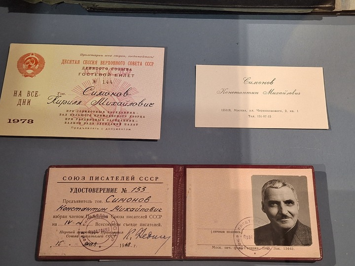Также упомянем, что Гослитмузей показал посетителям письменный стол, кресло, лампу и массив личных вещей Симонова, включая заграничные магнитофоны/диктофоны, которыми он пользовался еще в военные годы.