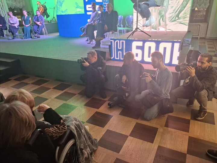 Зоя Богуславская в эти минуты находится в Доме Пашкова, где идет церемония награждения победителей "Большой книги". Ее появление в сопровождении помощниц вызвало ажиотаж - прессы устремилась к Зое Борисовне. Сейчас ее предстоит переместить на сцену (Богуславская передвигается, конечно же, на коляске). - Смотрите только меня не уроните, - шутит она. Фотографы сидят напротив Богуславской на корточках в значительном количестве, звучат сотни звуков затвора.