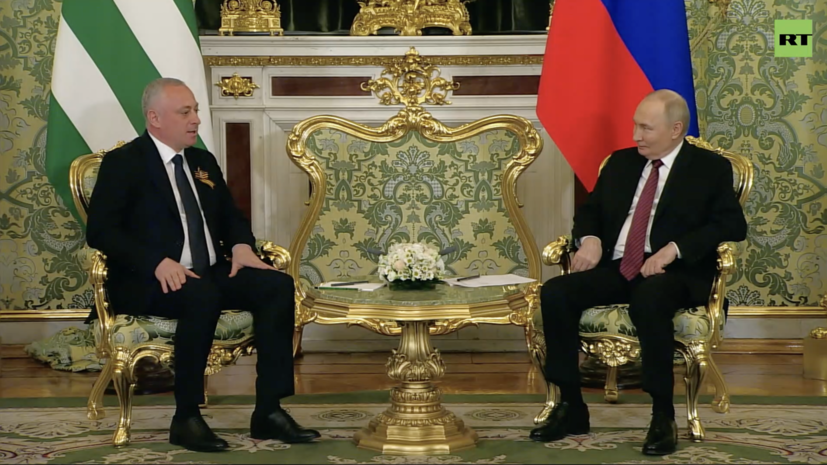 В субботу, 10 мая, Владимир Путин проводит в Кремле встречу с президентом Абхазии Бадрой Гунбой. RT вёл прямую трансляцию.