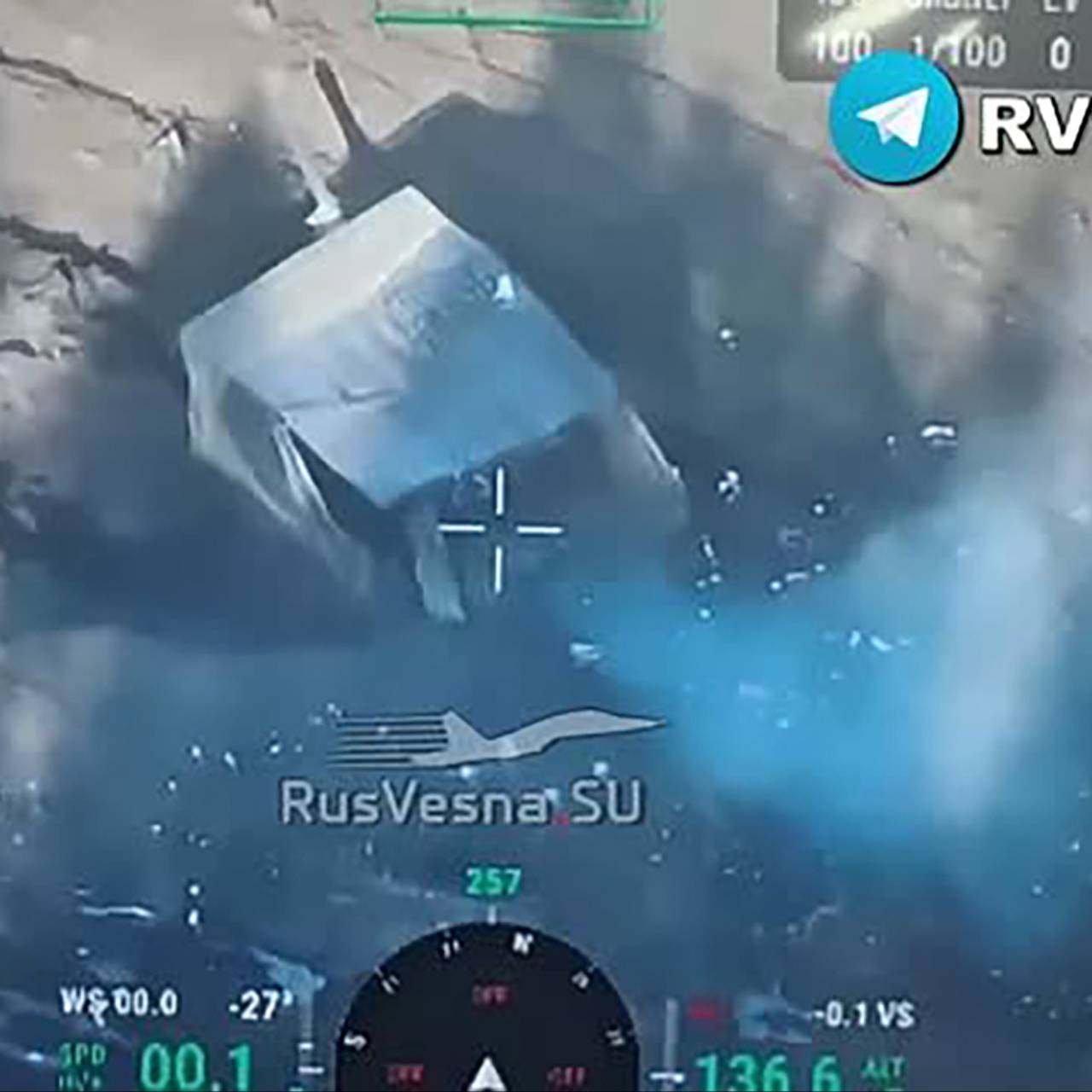 На кадрах, снятых российскими дронами, видно, как беспилотники добивают украинскую технику. Точное место съемки не называется.